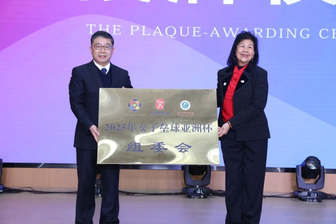 之后,亚洲垒球联合会秘书长莎丽代表组委会向我校党委书记刘子实授牌,并表示期待热情好客的西安和强大的办赛团队一定会成为出色的东道主,向国际展示体育文化的魅力。