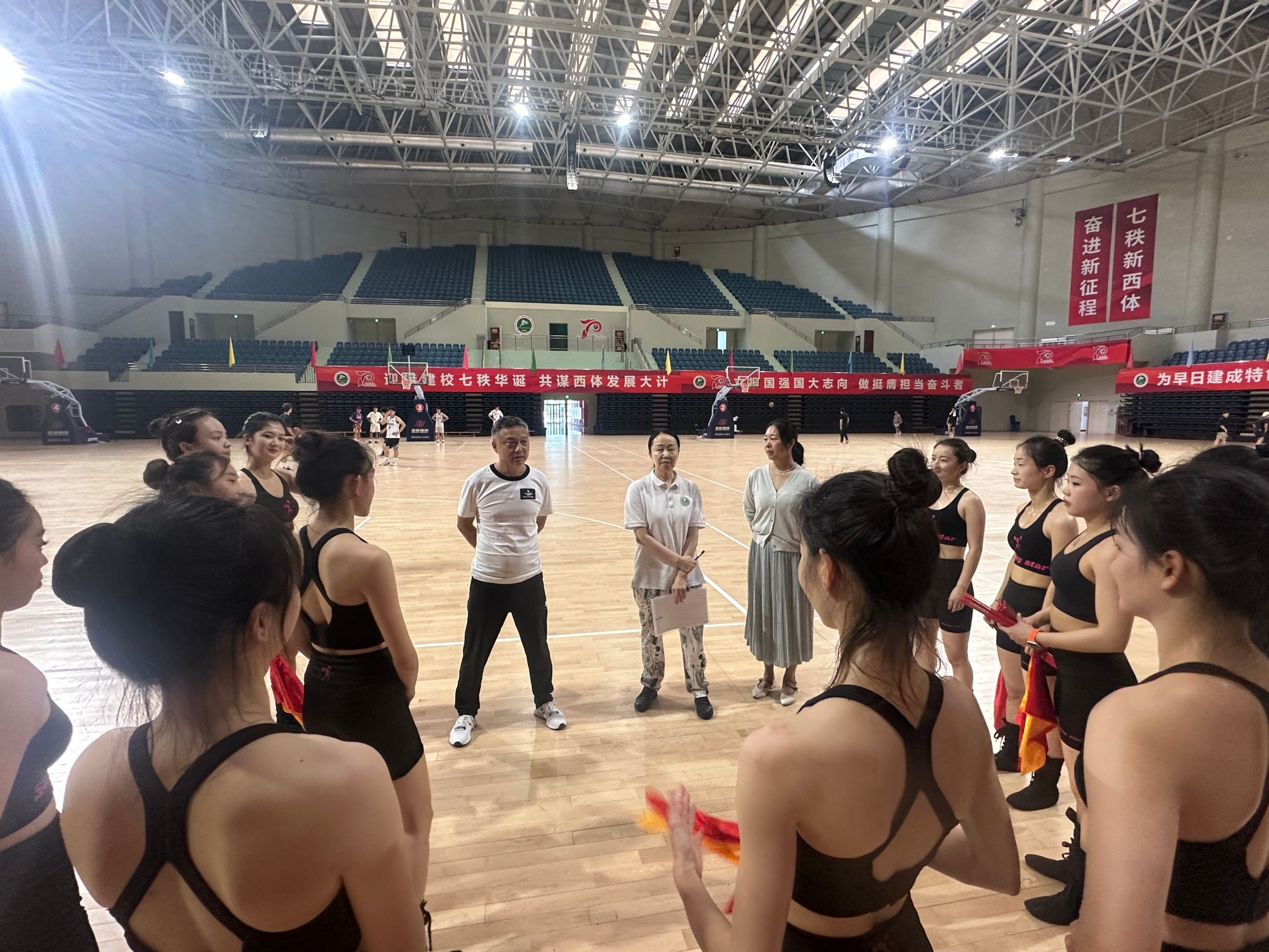 2025年5月16日,久久不卡区鄠邑校区手球馆人声鼎沸,女子啦啦操队全体成员齐聚,参加全国女子啦啦操锦标赛赛前动员会。