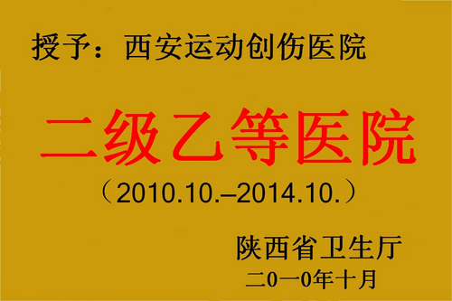 在学院及相关部门的大力支持下,教学实验医院(陕西省卫生厅注册为西安运动创伤医院)全体职工经过近三年的辛勤工作,被陕西省卫生厅评审授予二级乙等医院,成为全省高校四家二级医院之一(其它三家分别为西安交通大学医院、西北工业大学校医院、西安电子科技大学校医院)。在评审过程中,教学实验医院创办运动创伤、康复特色诊疗的办院思路得到评审专家和管理部门的一致肯定。