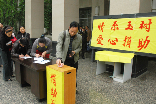 “地震无情人有情”,我院工会和团委迅速行动起来,号召师生为青海玉树地震灾区捐款。4月19日下午五点,广大师生在三个募捐箱前为灾区慷慨解囊。一笔笔捐款,一份份爱心,一片片暖流汇聚在一起,为灾区人民献上一份微薄之力。截至发稿前,师生共募集捐款近7万元。其中教职工共捐款63527元,学生共捐款5970.7元。 最让人感动的是,学院有些职工虽然收入并不高,但大家支援灾区的热情丝毫未减,几十元的捐款里面,充分体现了他们浓浓的爱心。