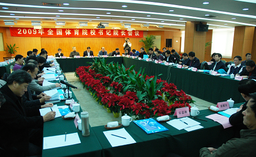为总结交流体育院校办学经验,更好地发挥体育院校在我国体育事业发展中的作用,由国家体育总局科教司主办,我院承办的2009年全国体育院校书记院校长会议于12月24—26日在西安水晶岛酒店隆重召开。国家体育总局副局长段世杰、教育部体育卫生与艺术教育司司长杨贵仁出席会议,国家体育总局有关司局领导、陕西省体育局,北京体育大学、上海体育学院及我院在内的14所体育院校书记院校长等50余人参加了会议。会议由国家体育总局科教司司长蒋志学主持。