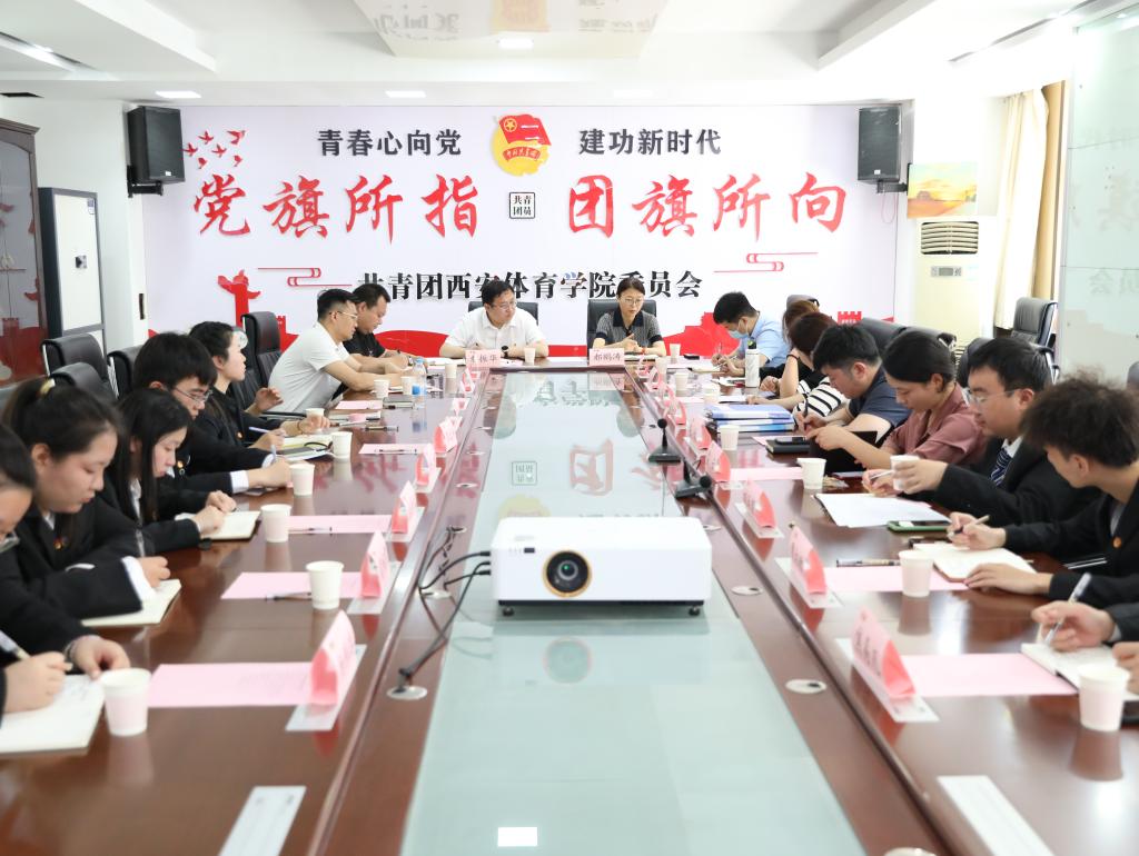 本网讯 为响应和落实全省“三个年”活动的安排部署,扎实推进主题教育走深走实,6月8日上午,共青团陕西省委学校部部长郝鹏涛、副部长朱振华一行来我校开展共青团工作调研,并召开团学骨干座谈会。校团委全体成员、各二级学院团委书记、校学生会主席团成员、大学生社团管理中心负责人、青年志愿者协会负责人等参加座谈会,会议由校团委书记熊辉主持。