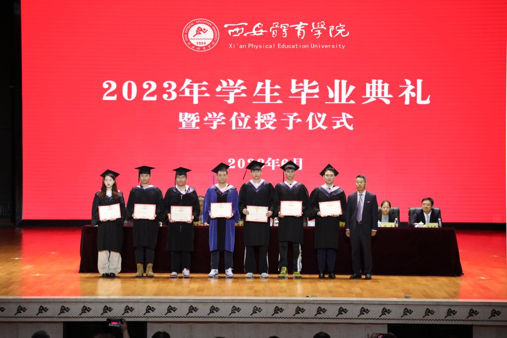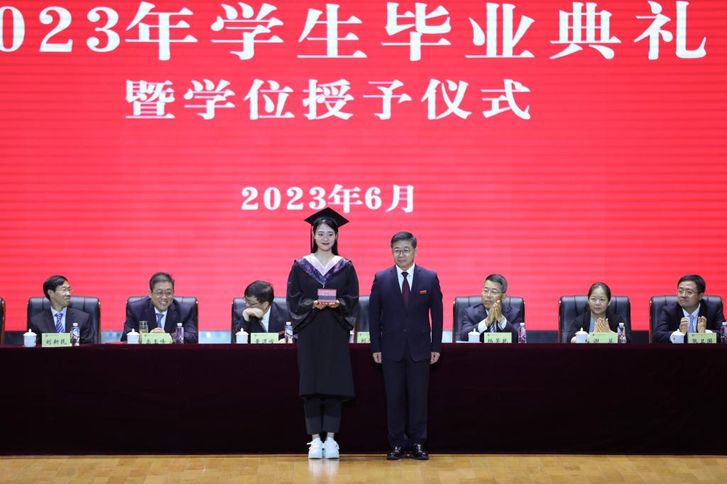 伴随着庄严的国歌声,毕业典礼拉开序幕。谢英宣读了《关于授予2023届本科毕业生学士学位的决定》,授予1989名本科毕业生获得学士学位,其中教育学学士学位1321人,艺术学学位398人,文学学士学位62人,管理学学士学位99人,理学学士学位109人。刘新民宣读了《关于授予2023届研究生硕士学位的决定》,其中授予163名研究生获得教育学硕士学位,189名研究生体育硕士专业学位(全日制),23名研究生体育硕士专业学位(非全日制)。