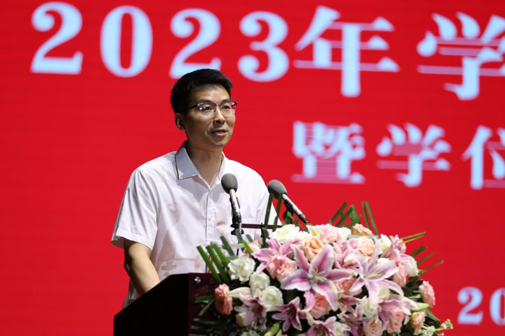 (副校长刘新民宣读《关于授予2023届研究生硕士学位的决定》)