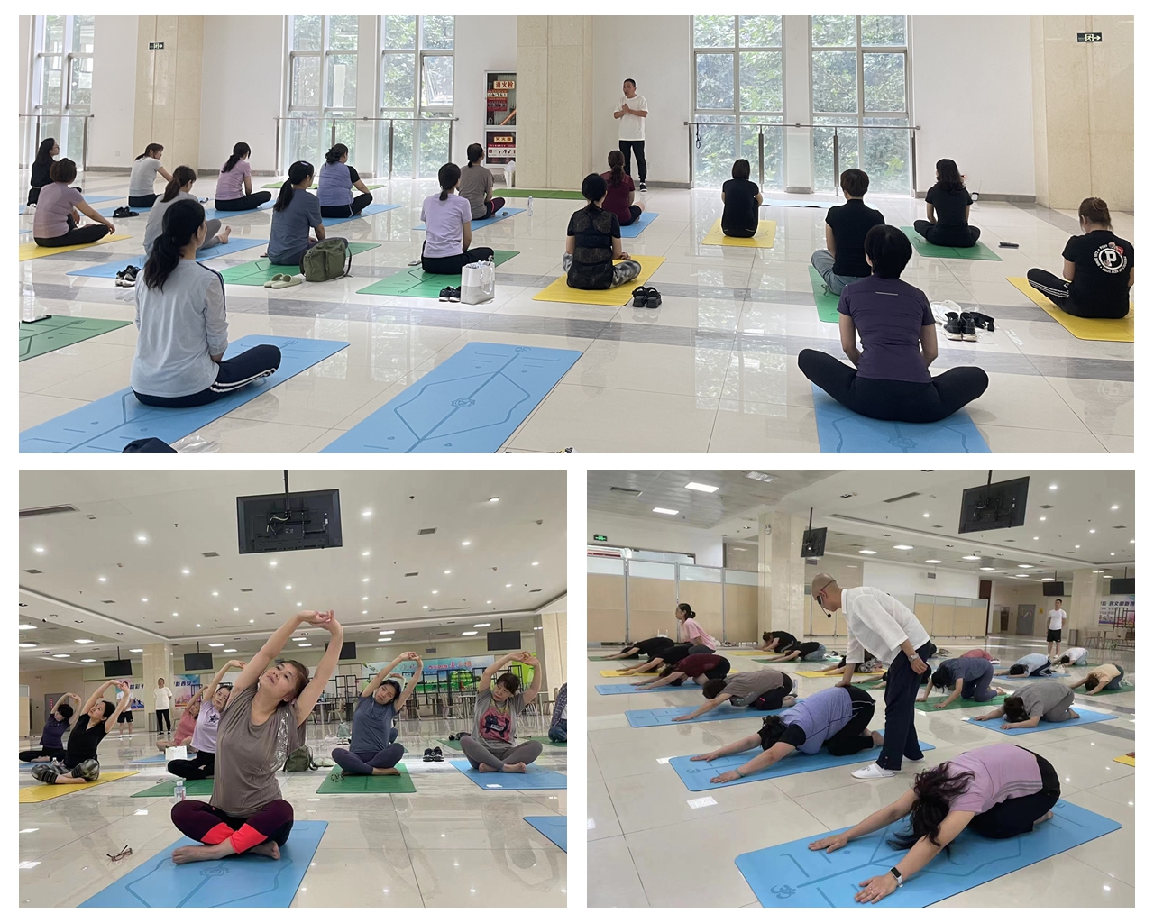 为进一步丰富我校教职工业余文化生活,缓解工作压力,提高运动技能,凝聚职工人心,近期,由校工会牵头,教务处、后勤处大力支持,运动休闲学院工会分会承办的教职工瑜伽活动在餐厅四楼的教师活动中心正式开班。运动休闲学院休闲项目教研室于巴锁、孙旭,人事处徐佳佳组成的教练团队牺牲午休时间,在每周一、周三、周五义务为在校教职工上瑜伽课。