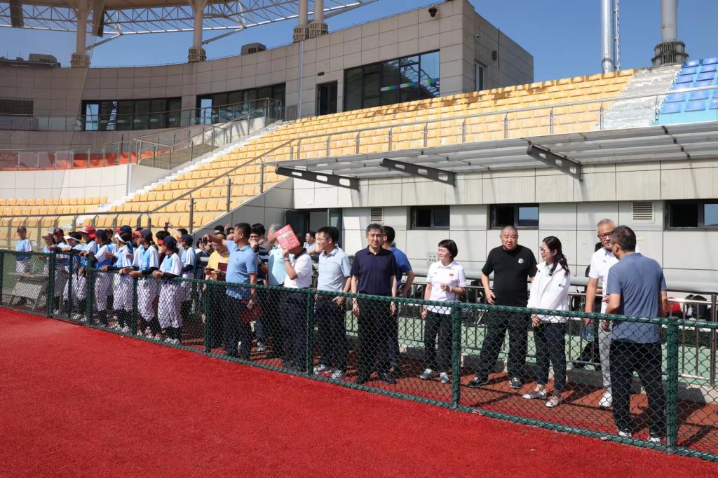 本网讯 8月3日上午,第十五届全运会广东赛区执委会副主席、广东省体育局局长崔剑带队,执委会一行三十二人来我校鄠邑校区参观调研。陕西省体育局副局长张王平、陕西省体育局二级巡视员郭文陪同参观,我校党委副书记高玉峰及相关部门负责人热情接待。