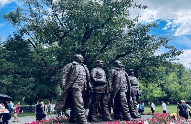 图为五大书记塑像