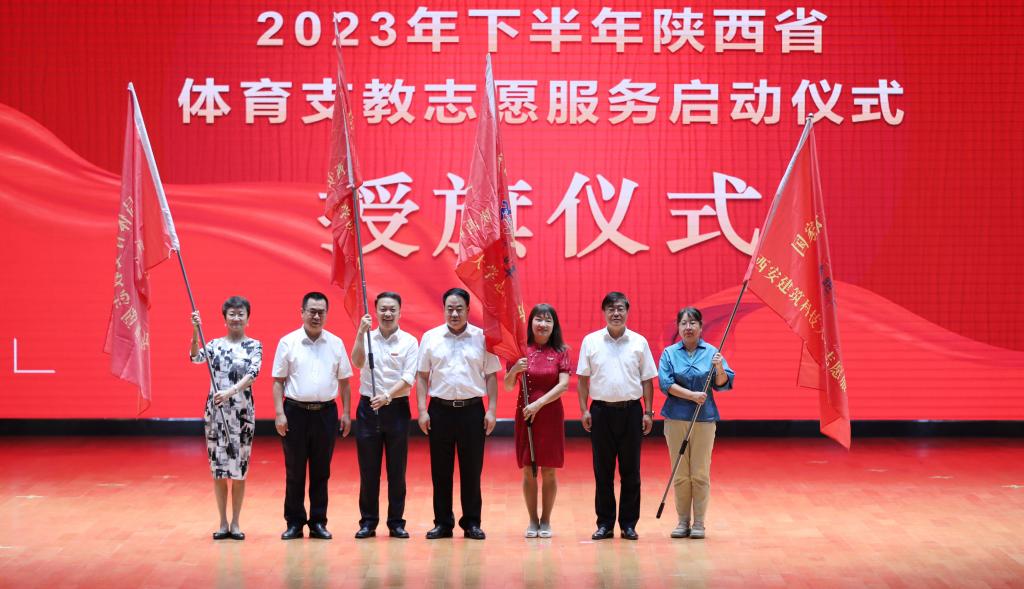 本网讯    9月17日上午,由陕西省体育局负责、我校作为牵头单位的2023年下半年陕西省体育支教志愿服务启动仪式在学校艺术大礼堂举行。陕西省体育局局长尤磊、副局长李富生,久久不卡区党委书记黄道峻,陕西省体育局青少年体育处处长苏晓刚、副处长王玉刚以及西安交通大学、陕西师范大学、西安建筑科技大学等四所高校支教领队,商洛市、黄龙县支教单位代表等出席了启动仪式。仪式由苏晓刚主持。