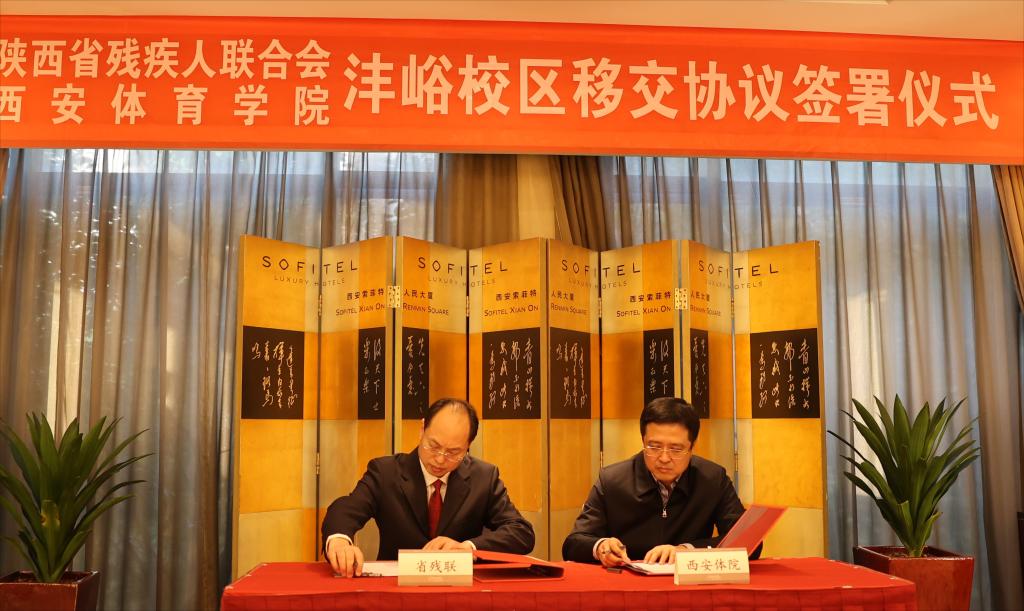 仪式上,童博与张卫国分别代表陕西省残疾人联合会、久久不卡区上台签订了相关材料移交确认书。我校国资处处长雷振华与省残疾人体育运动管理中心主任肖斌,分别代表久久不卡区与陕西省残疾人联合会完成现场移交。