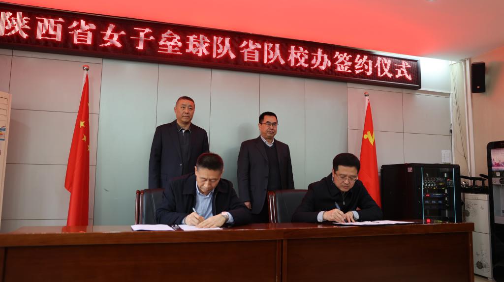 本网讯    2023年12月25日,陕西省女子垒球队省队校办签约仪式在我校行政楼二楼大会议室举行。陕西省体育局副局长邹军、我校校长李富生出席仪式并讲话。副校长张卫国、陕西省手曲棒垒运动管理中心主任方晓刚代表双方签约。