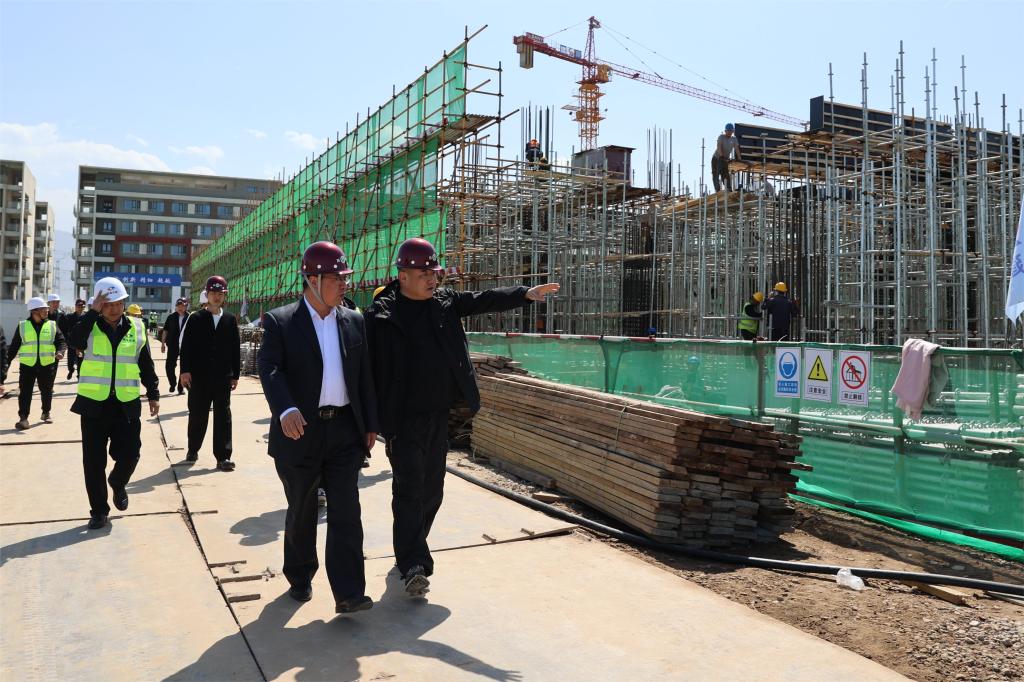 李富生一行先前往鄠邑校区东区二期建设项目现场查看了七号学生公寓和教学综合楼项目工程进度,听取了基建处的工作汇报。随后依次到学生公寓、橄榄球场、棒球场、学生餐厅、西区垒球场实地调研。