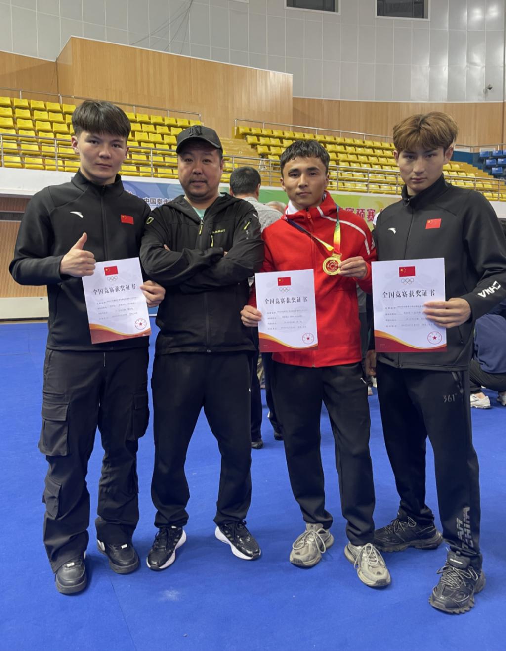 本网讯      近日,我校拳击队队员哈斯铁尔·阿都在2024年全国男子拳击锦标赛预赛(北半区)中获得54公斤级冠军。其他两名队员昂沙尔·达吾林、包尔江·卡瓦力汗以各自级别的第五名成绩获得决赛资格。