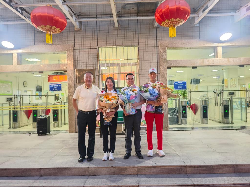 本网讯 8月9日下午,李富生赴机场迎接我校出征巴黎奥运会运动员李炎东及教练员蒋秋艳荣誉返校。党校办、竞校负责人陪同。