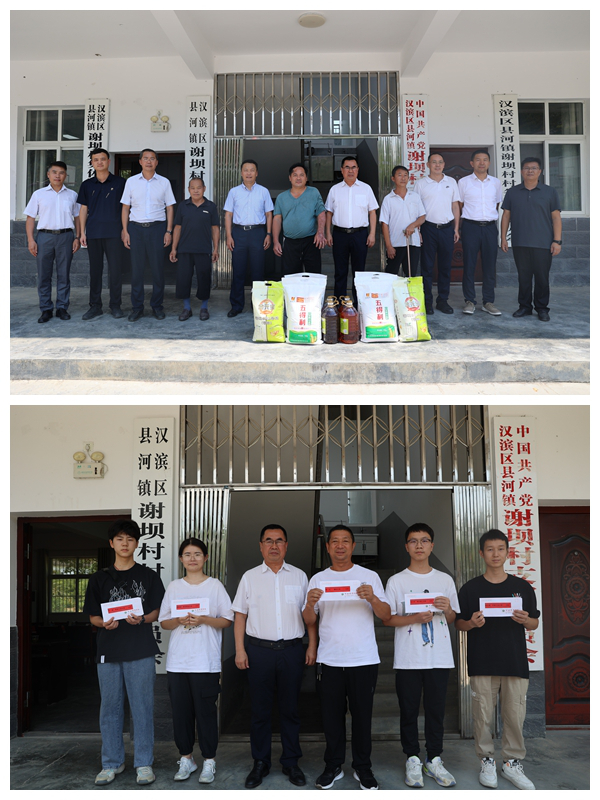 本网讯 为加强乡村振兴产业帮扶,8月15日,校长李富生、党委副书记马海涛和党委校长办公室、运动与健康科学学院、经管学院负责人等到我校帮扶点安康市县河镇谢坝村看望困难群众、慰问高考考学学子,并与驻村扶贫干部召开产业发展座谈会。