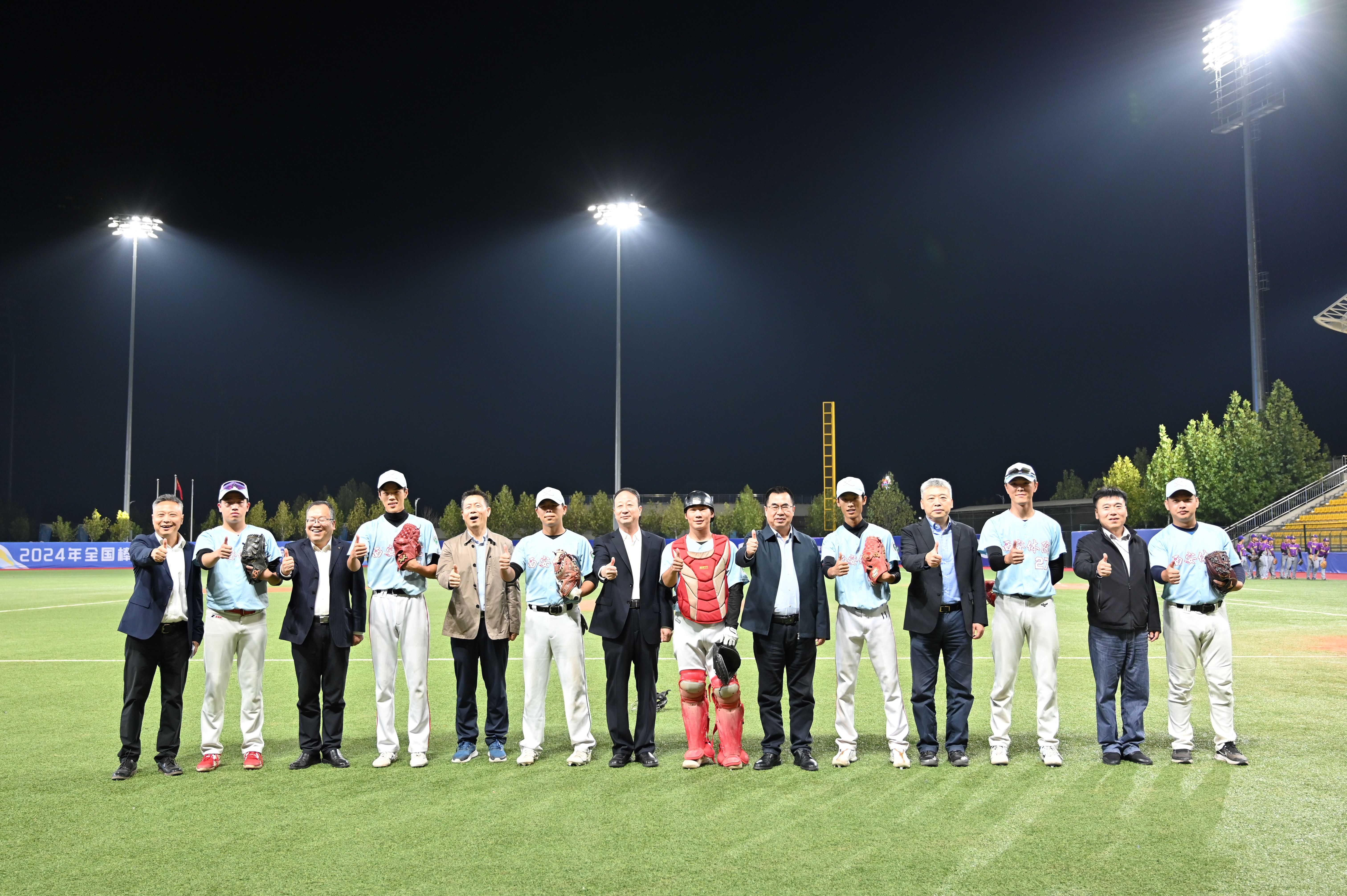 本网讯    10月19日晚,2024年全国棒球冠军赛暨全国体育院校联赛在我校鄠邑校区棒球场开幕。中国棒球协会副主席闫占河,校长李富生,副校长张葆欣,陕西省体育局手曲棒垒管理中心主任方晓刚等出席开幕式。