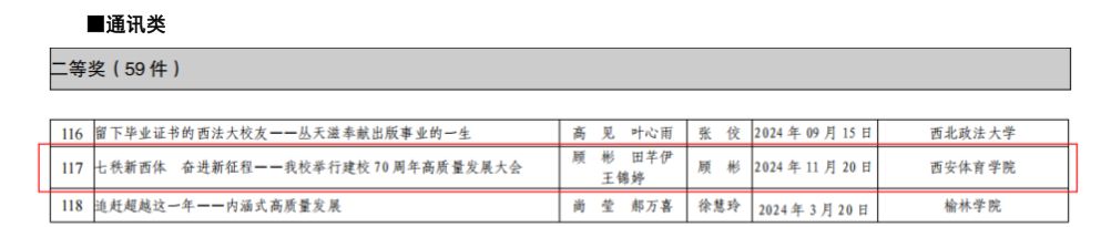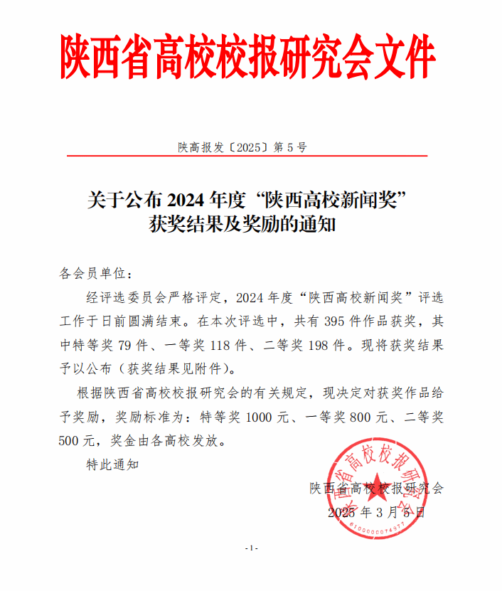 本网讯 日前,陕西高校校报研究会公布了2024年度“陕西高校新闻奖”评选结果,我校2件作品获奖。其中《〈久久不卡区报〉建校七十周年发展巡礼——追溯初心》获得版面类特等奖,顾彬、田芊伊、王锦婷撰写的《七秩新西体 奋进新征程——我校举行建校七十周年高质量发展大会》获得通讯类二等奖。
