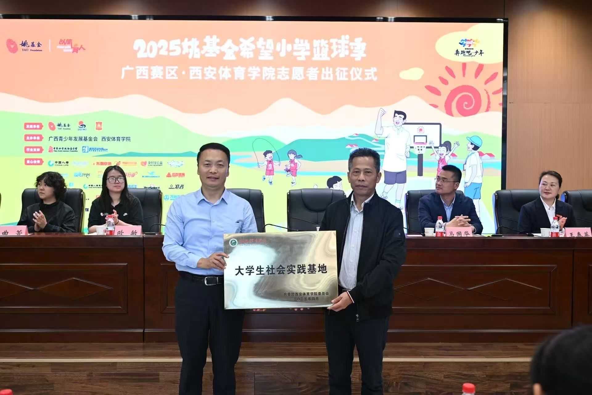 本网讯    4 月 11 日,2025年姚基金希望小学篮球季广西赛区支教志愿者出征仪式在我校鄠邑校区举行。党委副书记马海涛、北京姚基金公益基金会项目主管欧敏、广西青少年发展基金会副理事长黎传文出席,校内相关职能部门、二级学院负责人及辅导员、篮球支教培训教师以及2025 年姚基金支教志愿者参加仪式。